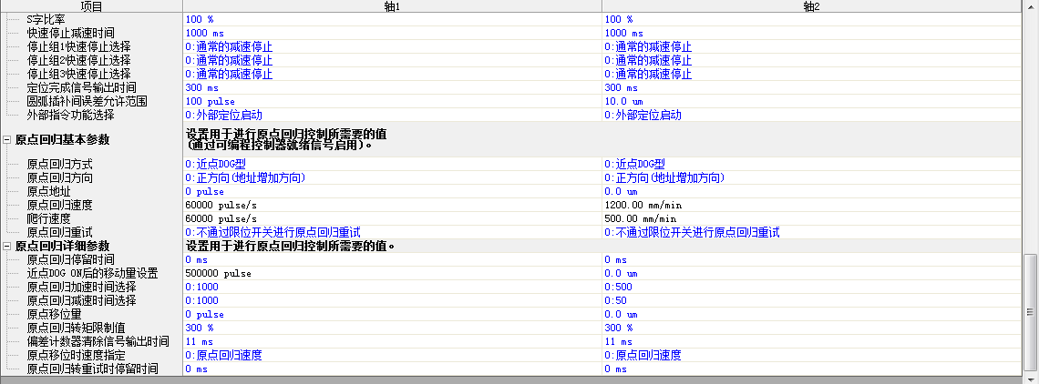 我又仔細查了一下,感覺這里面都沒有問題。下面是我設置的一些參數。后來我又把里面的程序全部刪掉,只留了參數和定位數據,PLC內存格式化,全部重來一次,都不行,還是報524的錯,真叫人一個頭大。
