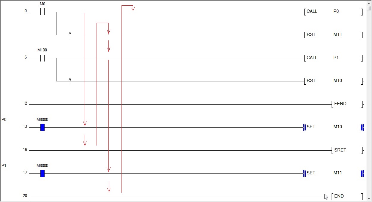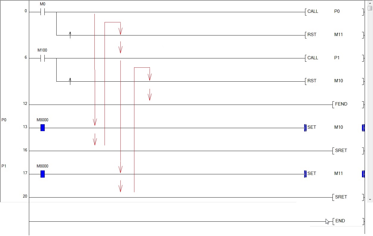 樓主還是看看PLC手冊吧,M8000的作用。沒用過調用子程序的情況,我認為是你輔助繼電器用的有問題。也可能子程序不受限制吧?