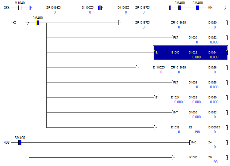 除0.無意義,改一下程序,被除數為0     D1030直接EMOV 0.00