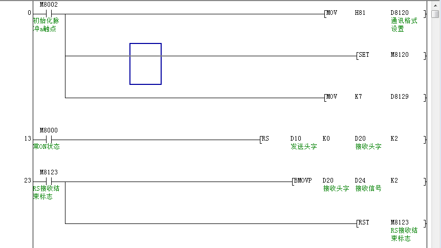 用的是三菱fx3u的plc,通訊卡是485-BD通訊板。兩個掃碼槍通過串口給pc發送數據,PC端經過數據庫比對給出兩個比對結果,然后PC再通過串口給plc發送這兩個結果。掃碼槍給PC發的信號先后順序不確定,PC給plc發的數據照理也是先后不一,反正是通過串口發的。