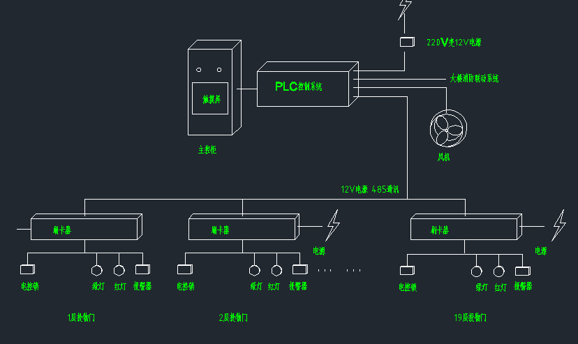請(qǐng)各位大神幫忙,下面的PLC程序怎樣寫?一橦樓有19層,每一層有一個(gè)門,每個(gè)門有一把電磁鎖,一個(gè)紅燈(紅燈亮不能開門),一個(gè)綠燈(綠燈亮可以開門),一個(gè)蜂鳴器(蜂鳴器響表示開門超時(shí),關(guān)好門后灰復(fù)不響),一個(gè)刷卡器,電磁鎖用刷卡或密碼通過PLC控制開和關(guān),為了安全當(dāng)有一個(gè)門打開時(shí),別的門打不開,要達(dá)到互鎖;當(dāng)所有的門都關(guān)好時(shí),所有綠燈亮,紅燈不亮,這時(shí)可以刷卡打開任意一個(gè)門,門打開后,綠燈滅,紅燈亮。如果門打開超時(shí),蜂鳴器響,關(guān)好門后灰復(fù)正常,