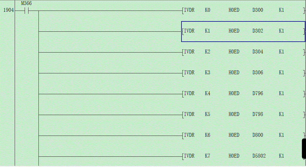 我控制了10臺變頻器,你可以參考一下,在觸摸屏上設置適合兩臺電機的頻率,電機互鎖控制,自己控制第1臺電機運行用頻率1,低2臺電機運行用頻率2,要使用三菱FX-485-BD模塊