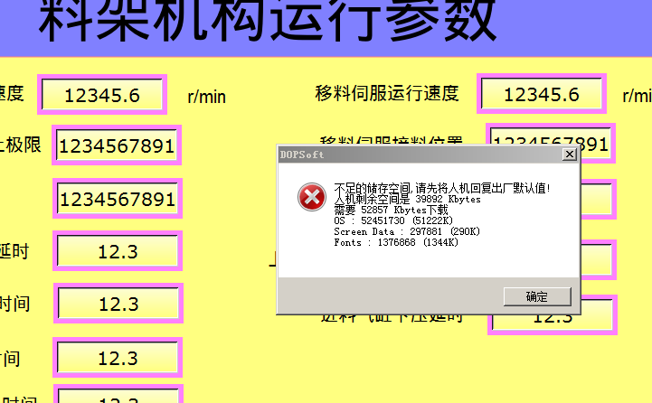 下載人機程序跳出錯誤,是程序太大嗎?于是重新做一個空程序下載也跳出此提醒。沒轍,以為是編程軟件問題,重新卸載安裝,問題依舊,進入人機系統看到有格式化,不管三七二十一先格式化,重啟開機灌程序問題依舊。最后采取聯機恢復出廠設置解決。