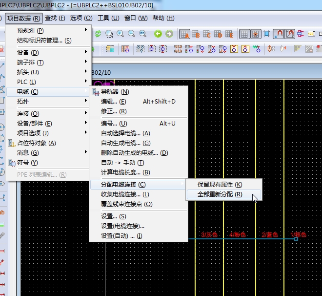 選擇 項目數據-電纜-分配電纜連接-全部從新分配