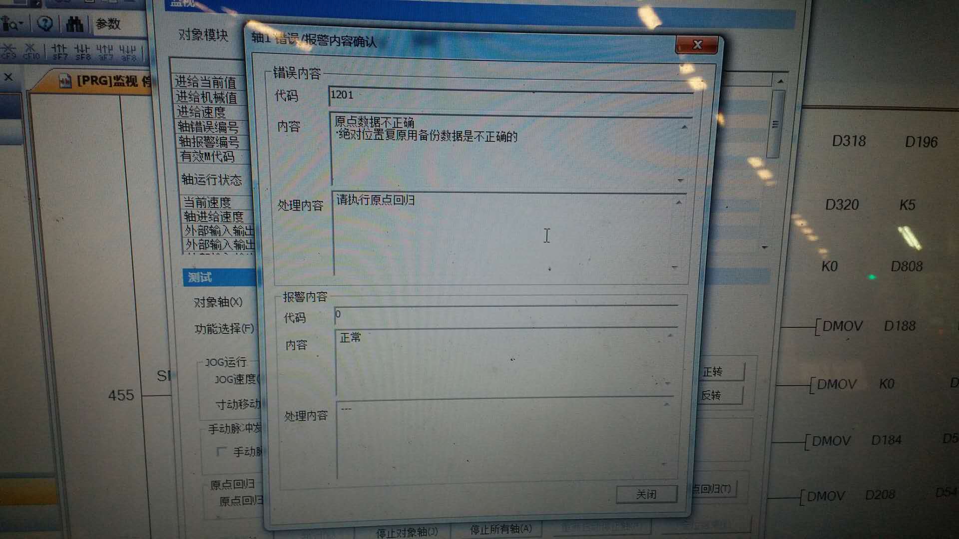 引用引用第4樓張揚(yáng)于2018-06-04 16:48發(fā)表的 :重新回原點不行,斷電還是報警1201,還出現(xiàn)自動往下掉
