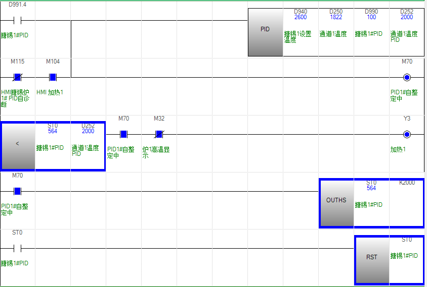 使用三菱5U PLC+FX5-4AD-TC-ADP加熱爐溫(錫爐65KG的容量)溫度會差超溫20度,PID是根據例題所寫,暫時想不出有什么好方法了。圖片使用的是(階躍響應法+PID控制)