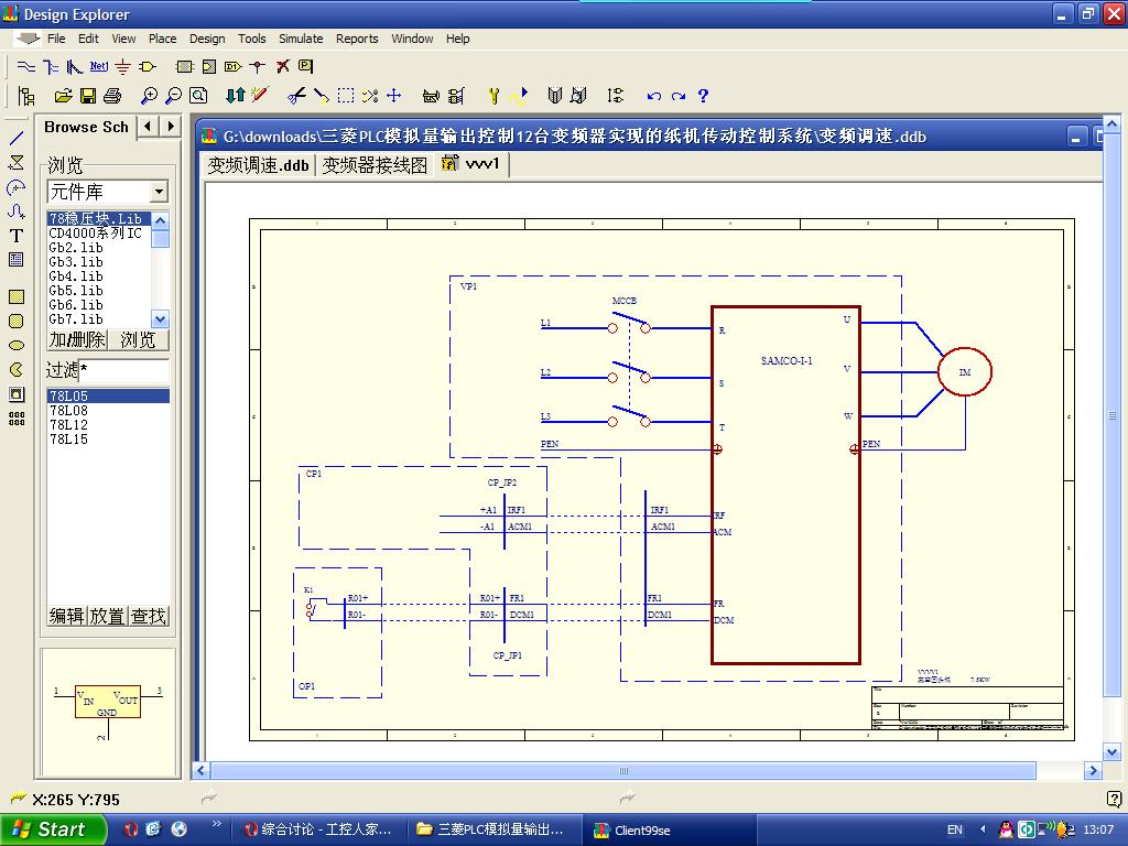 .ddb為protel99 se(電子電路)軟件畫的電子接線圖。如下為第一個變頻器接線圖: