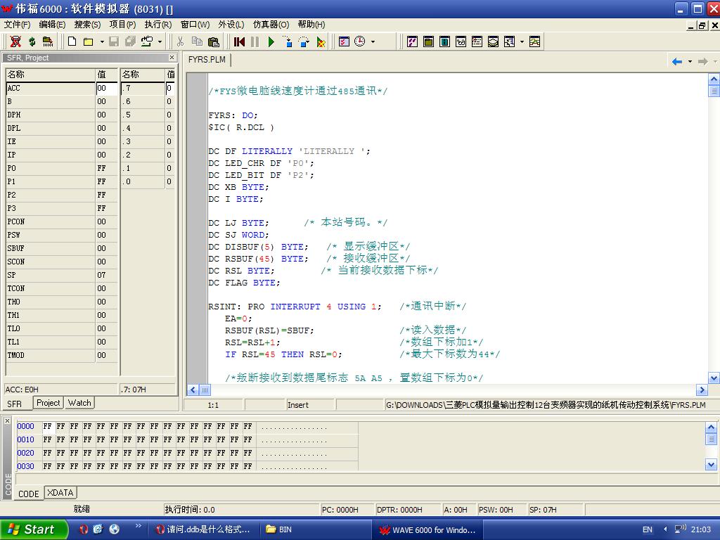 從你提供的文件看,FYRS.PLM這個文件是單片機語言的文件,可能是他們自己用單片機做的人機界面。用這個軟件能打開WAVE6000。你可以試試!
