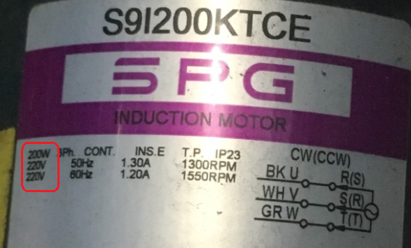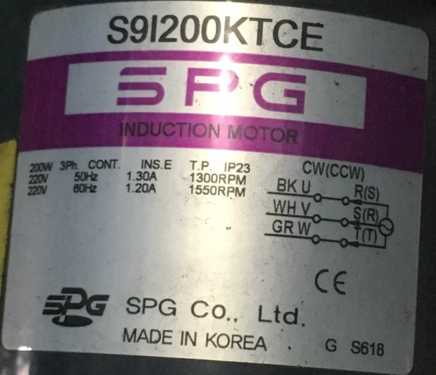 3相220V,200W,電源50Hz時,額定轉速1300RPM,60Hz時,1550RPM。