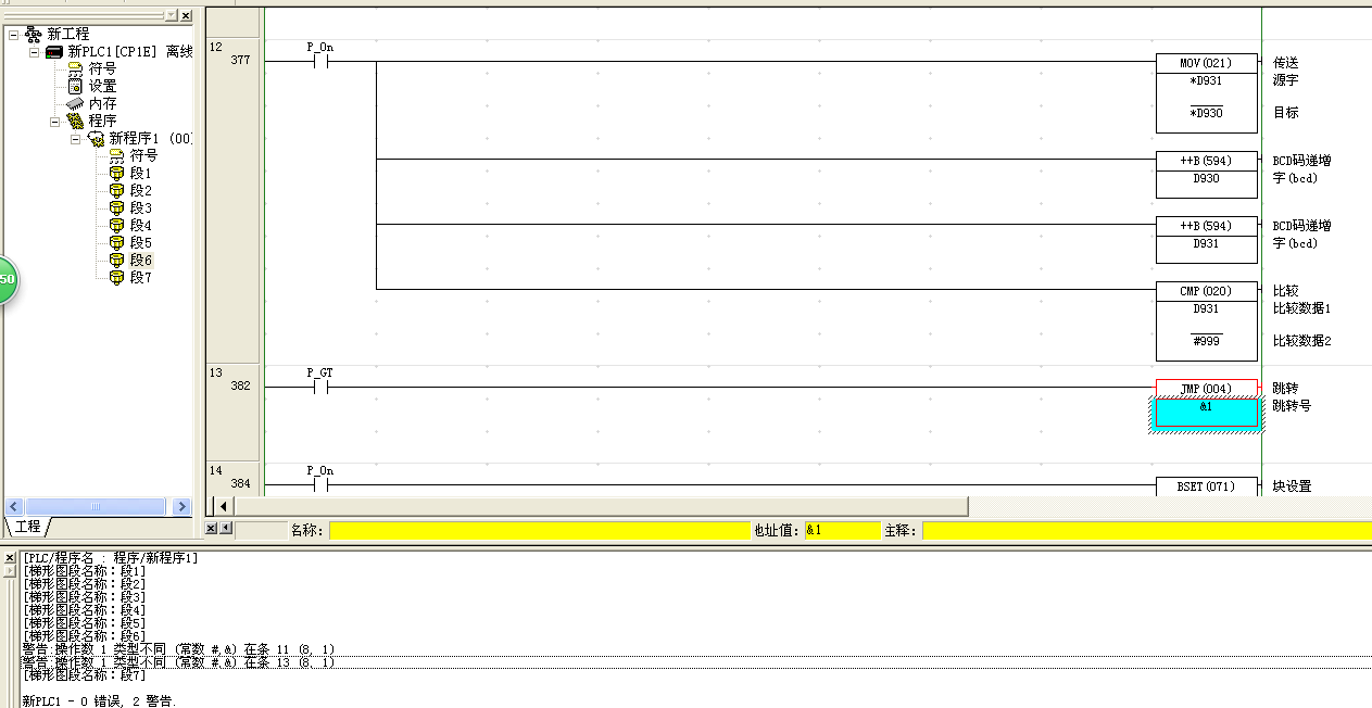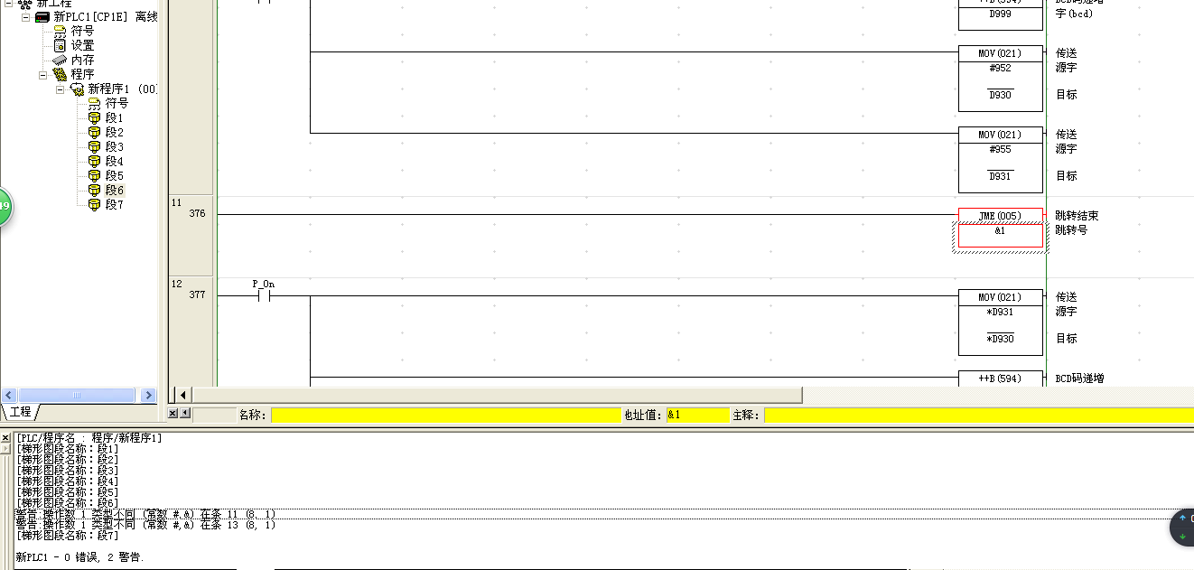 把CPM1A-40  程序輸入到CP1E N40    輸出點10改為100 。還有這個跳轉怎么改?對歐姆龍PLC不懂  !師傅指點! 圖片是顯示的轉換兩處警告