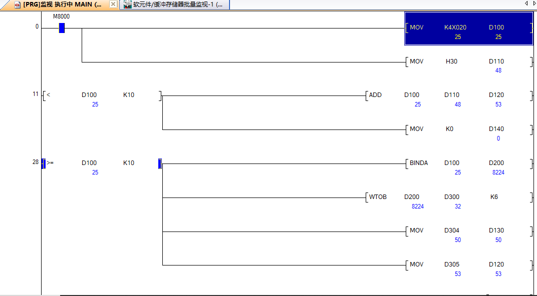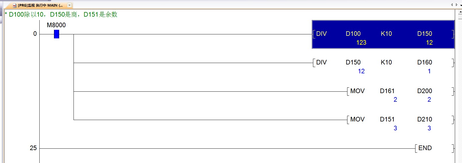 大家來討論一下,當(dāng)D100大于等于10時(shí),怎么把D100的十進(jìn)制十位傳送到D200,把個(gè)位傳送到D210.