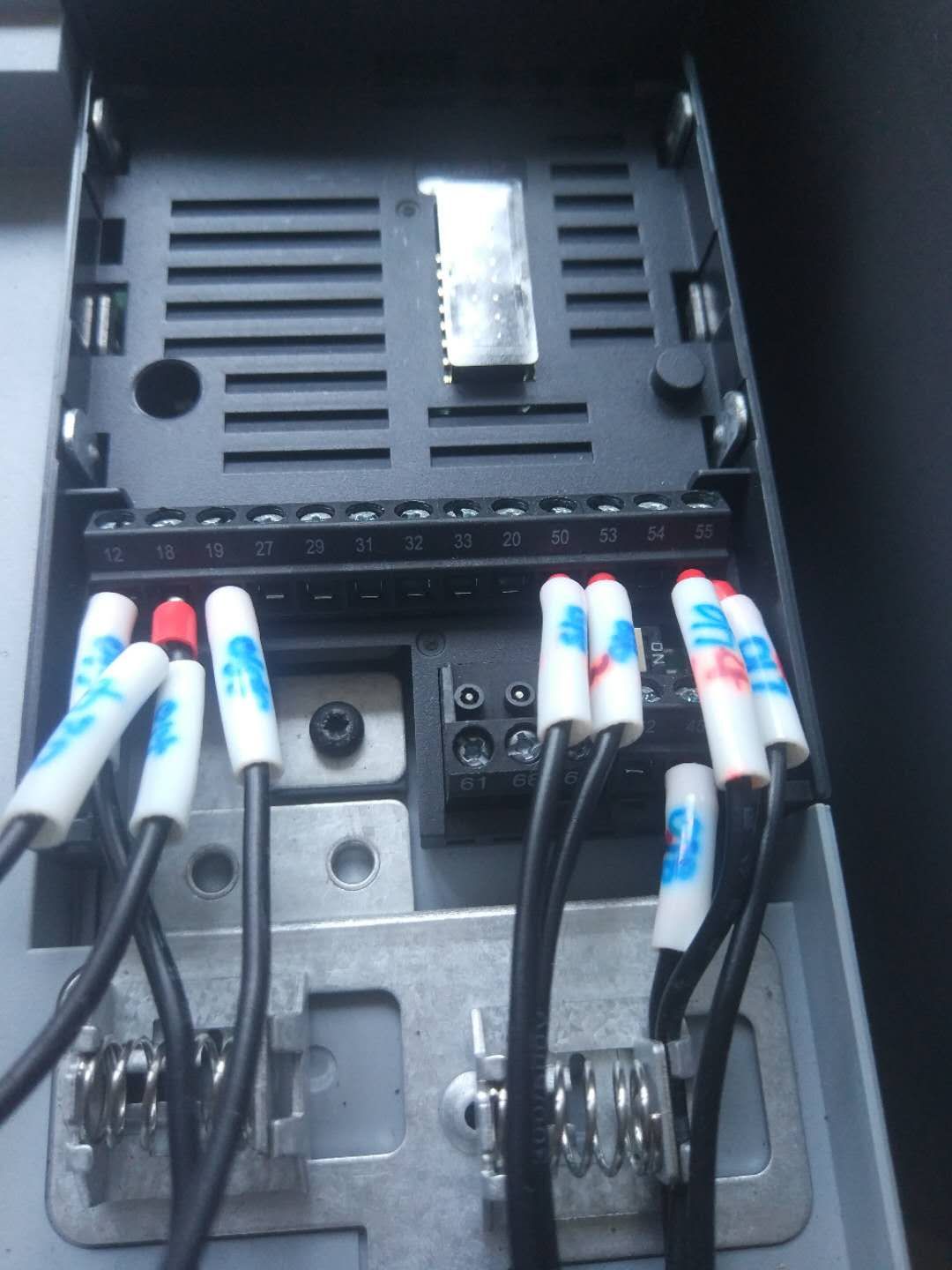 供應商送來的電柜,放了很久了,圖紙資料啥都沒,電柜比較簡單,丹佛斯變頻器,三個按鈕一個電位器兩個繼電器,接線后按鈕按下繼電器吸合沒反應不啟動,查了線路一塌糊涂,應該是一個正轉繼電器一個反轉繼電器,各位幫忙看看那里還有問題,端子接線是12  18  19(啟動),50  53  55(調速電位器),45(模擬量輸出到儀表),放暑假了在農村上網不變,手機查了下沒看到詳細手冊,變頻器上標簽都被撕了,型號都不知道,號碼管手寫的都看不清,真是最垃圾供應商沒有之一