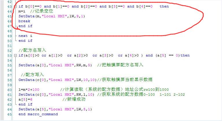 新增的配方總是不成功,覆蓋原來的配方(記錄空位這部分無法生效),大家幫忙看一下宏指令哪里出錯了