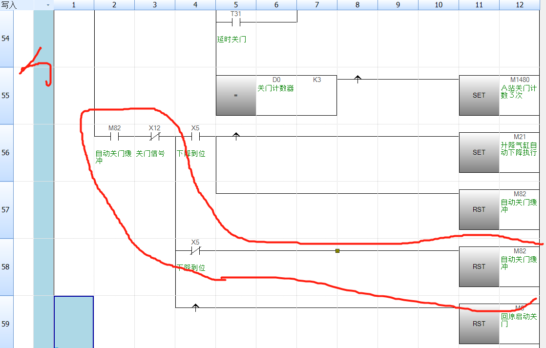 不好意思現(xiàn)在才回復(fù)大伙。現(xiàn)在我用了觸點使其邏輯m82不再得電。之前的問題是,我的RSTm82接通了,setm82斷開。但是線圈m82是得電的