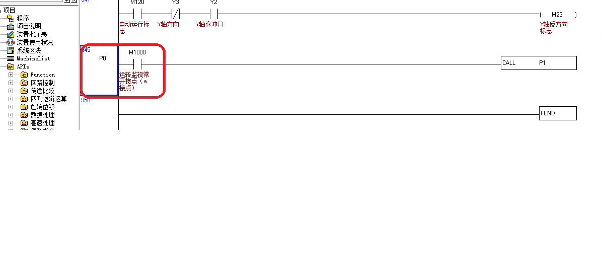 這個是臺達軟件中的條件跳轉指令CJ的指針P在軟件的位置