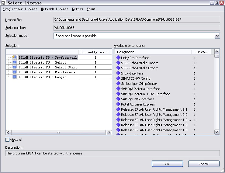5. 復制 SN-U10066.EGF 到 C:\Documents and Settings\All Users\Application Data\EPLAN\Common
