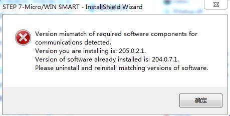 我在安裝STEP 7 MicroWIN SMART V02.05.00時,出現以下畫面,安裝不能繼續,請問是什么原因 ?謝謝