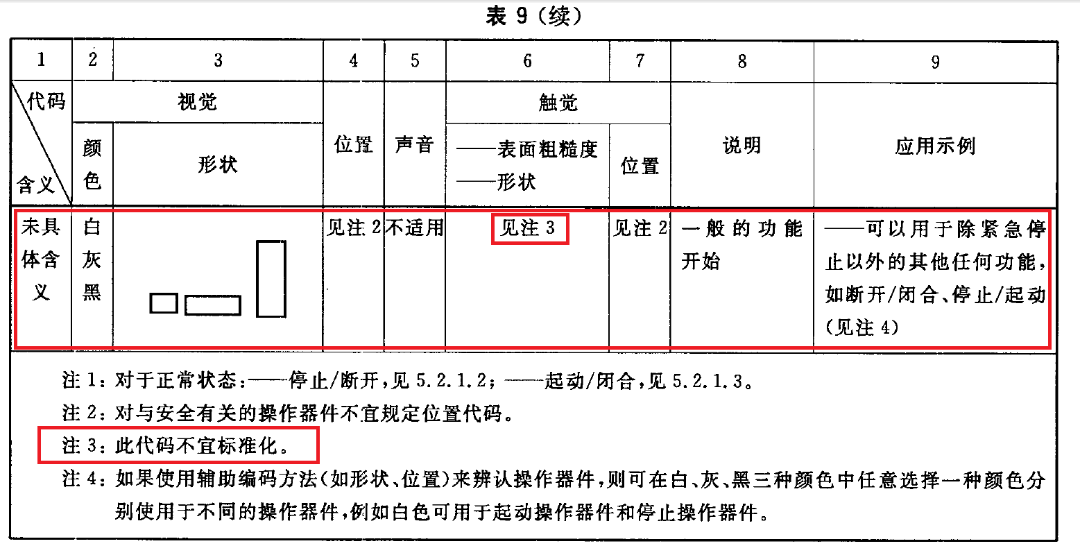 在GBT4025《人機界面標志標識的基本和安全規則》中,5.2.1,停止最常用的是黑色,紅色也允許使用。啟動最常用的是白色、綠色也允許使用。