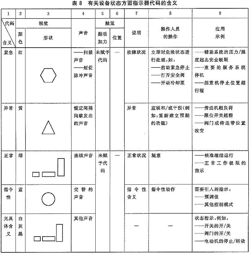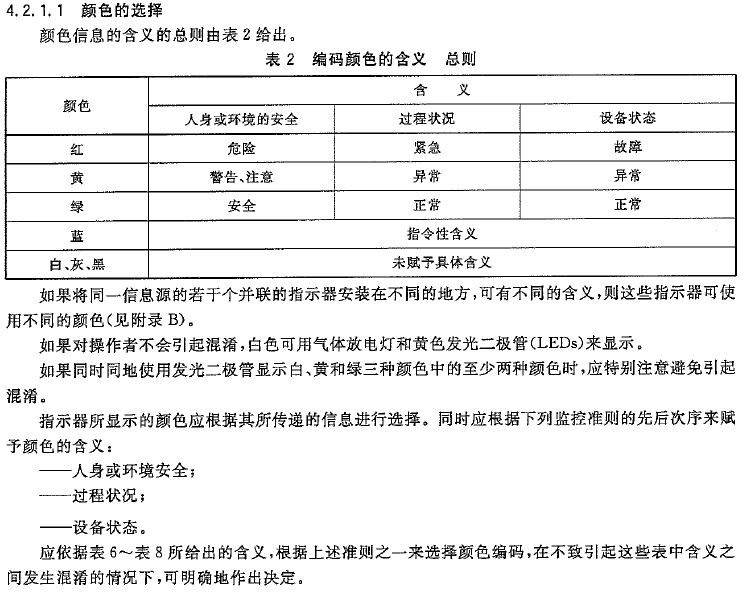 我們自動化中無論從表6、7、8來說,用紅色指示燈表示設備停機狀態、綠色指示燈表示設備運行狀態都是不夠嚴謹的,甚至是錯誤的。