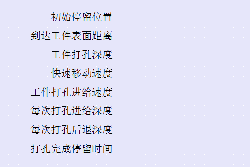 每次打孔后退速度,打孔完成停留位置,打孔結束最終停留位置,打孔結束返回速度,