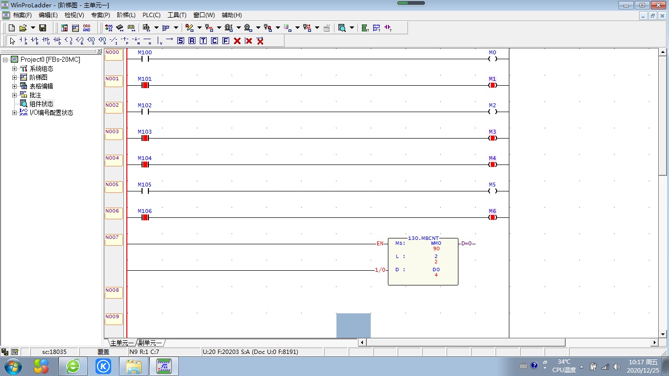 例如我現(xiàn)在M1,M3,M4,M5是ON的D0會(huì)呈現(xiàn)4表示M1~M5間有4個(gè)繼電器是ON得