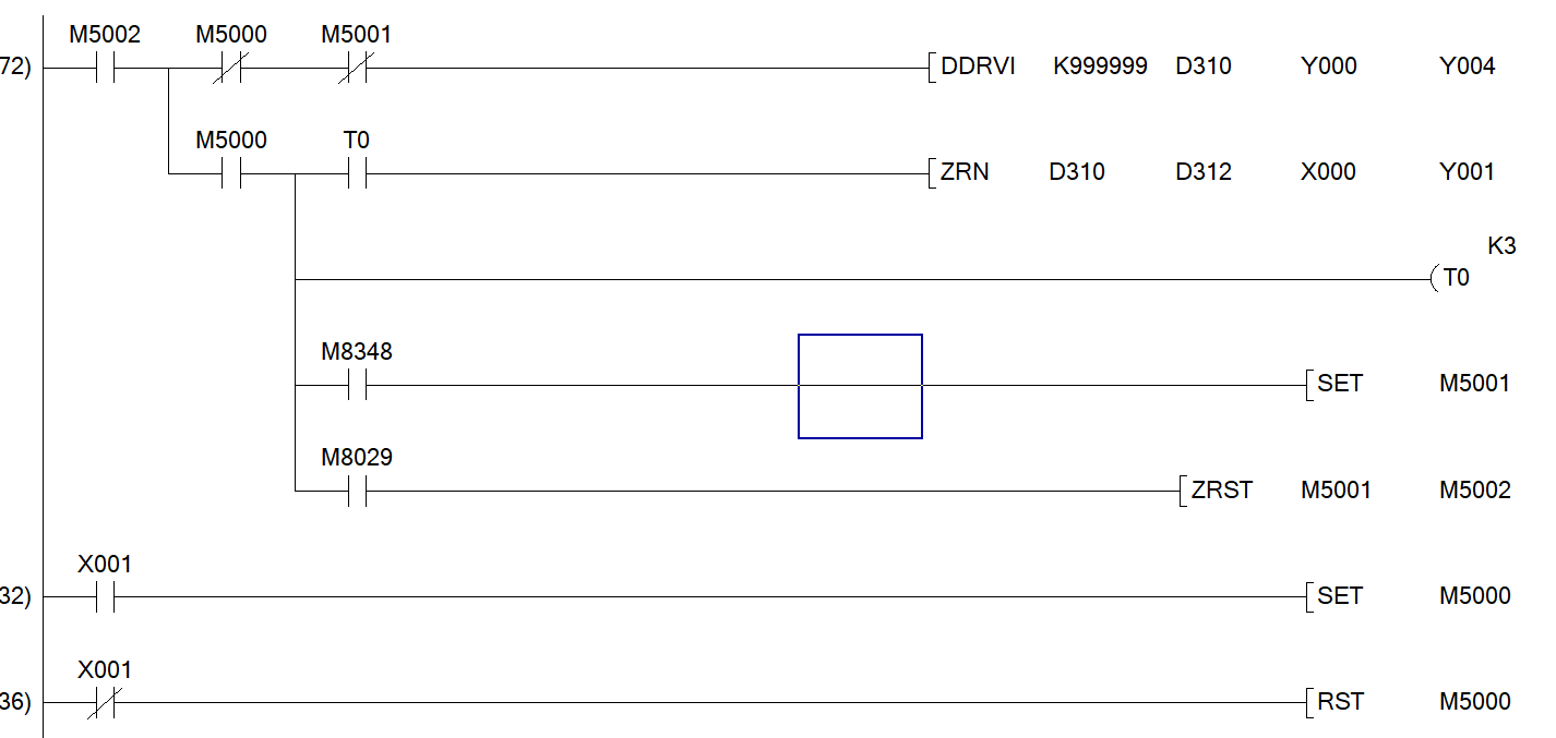 目前考慮  1.步進先單方向回極限位   2.到達極限位后啟動ZRN 指令回原點。