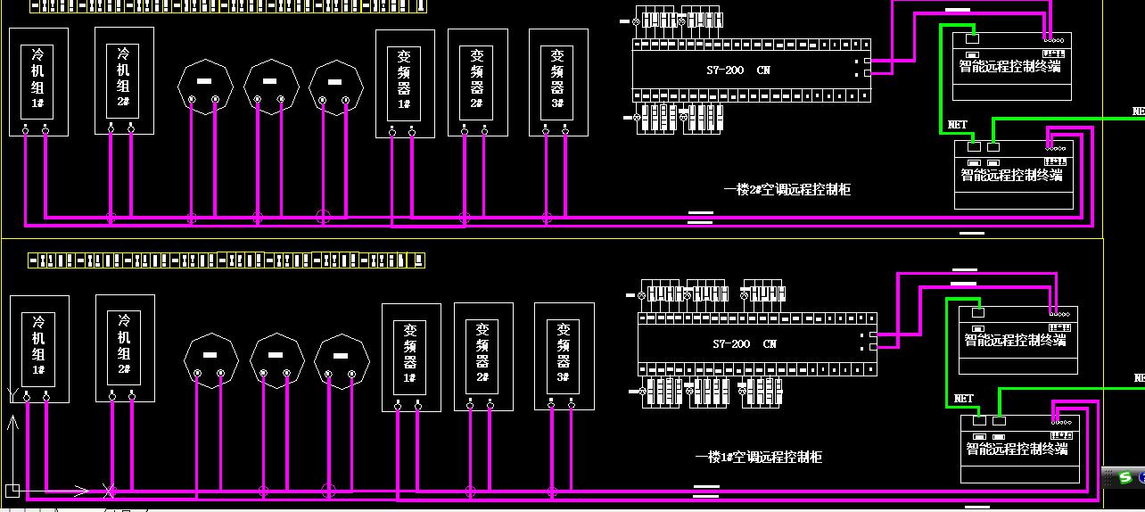 隨著國家經濟的快速發展,大型中央空調應用越來越廣泛。一般來說,一個獨立的大型暖通空調及通風工程由室外機,室內機及排風機組成。越是大型暖通工程這三大設備一般相隔較遠。各部分即緊密聯系又相互獨立。緊密的關系,如夏天制冷時,需必須開啟室外空調機再開室內恒壓怛溫機及排風機。冬季天氣冷只需開啟排風機和室內恒溫恒濕機組即可。由此一來,三大部分交由工作人員觀察調整操作設備很容易造成電力能源的浪費,從而不能達量更好的舒適環境。在強調舒適的同時,空調的管理及節能環保是一個不能忽略的問題。針對此問題,如何能使用一種可以把三大部分關聯起來集中控制,用智能工藝流程圖的方法來管理操作三大部件。在達到環境舒適的情況下,做到能耗最小化。