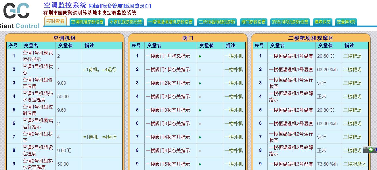 2、集中電腦可查看所有設備的參數,運行狀態及控制操作等。