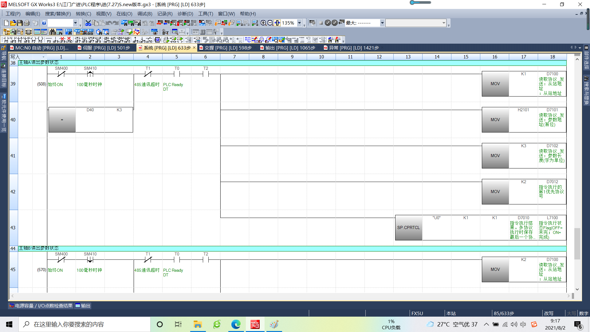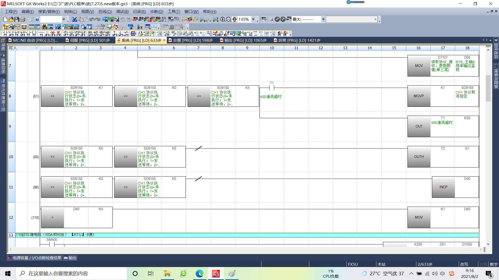 由前段時間測試的FX5U和臺達MS系列的測試,最近又發現一些狀況:當只有兩臺變頻器從站時,只連續讀取運轉狀態,頻率命令,輸出頻率時。靜態下讀取沒有問題,但是變頻器運行起來后通訊就會卡在數據接收處理,自動中止完繼續讀取依然,停掉變頻器以后又正常了。
