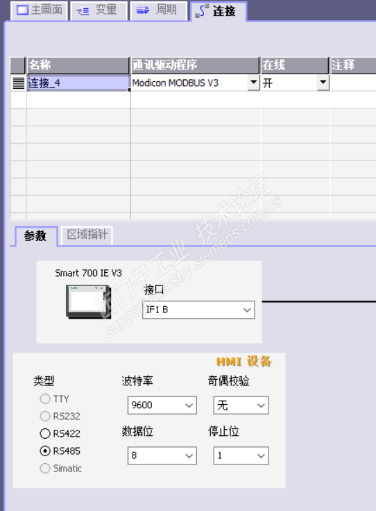 各位大神,我用的SMART700IE屏與smart200 plc做Modbus RTU通信測(cè)試,(其實(shí)最終我要用的是smart200的通信功能,屏?xí)サ舻模瑑H暫時(shí)驗(yàn)證一下而已)