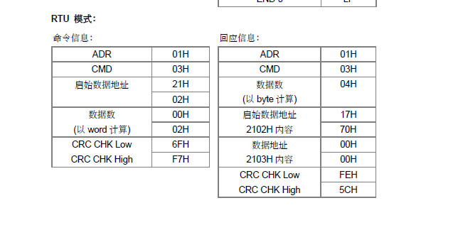 意思是:01站號;03讀命令;04共4個數;1770是第一組數;00 00第二組;FE 5C為CRC碼;
