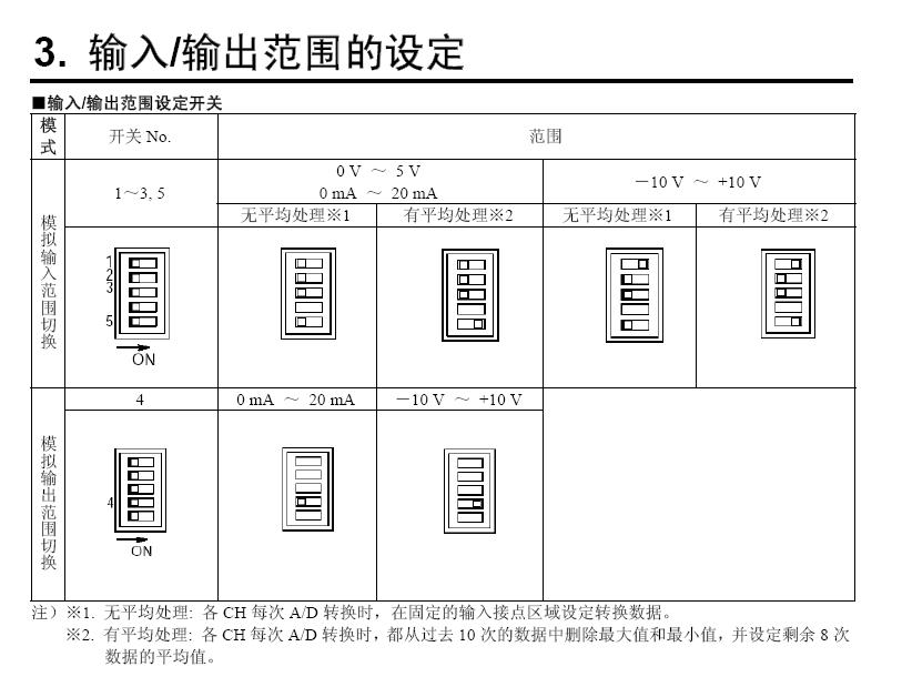 松下FP0A21上有撥碼是干什么用的啊在手冊(cè)上看了半天都沒(méi)寫(xiě)的,還有我看手冊(cè)上寫(xiě)模擬量輸出是-2000---+2000對(duì)應(yīng)的是-10V-----+10V,那么我輸出電壓0-10v對(duì)應(yīng)的是多少啊?原以為應(yīng)該是0-2000,但在現(xiàn)場(chǎng)不是這樣,輸出2000----4000對(duì)應(yīng)的才是0-10V,跟那個(gè)撥碼有關(guān)系嗎?求大俠給個(gè)解釋。謝謝