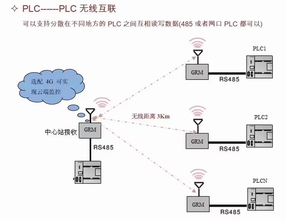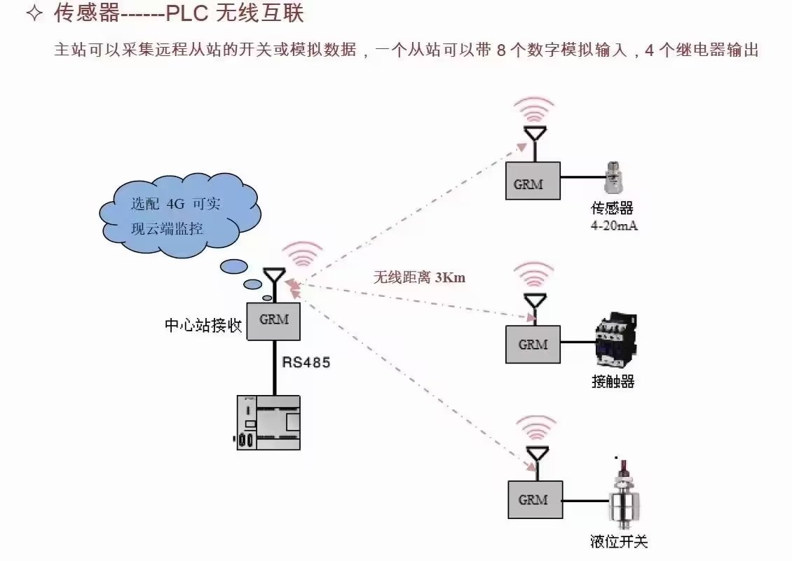 GRM110系列的無線通信模塊,用3個主機帶9個從機,把3個廠區9個不同地方的液位信號傳送到AB的PLC(模塊自帶AB的PLC協議)