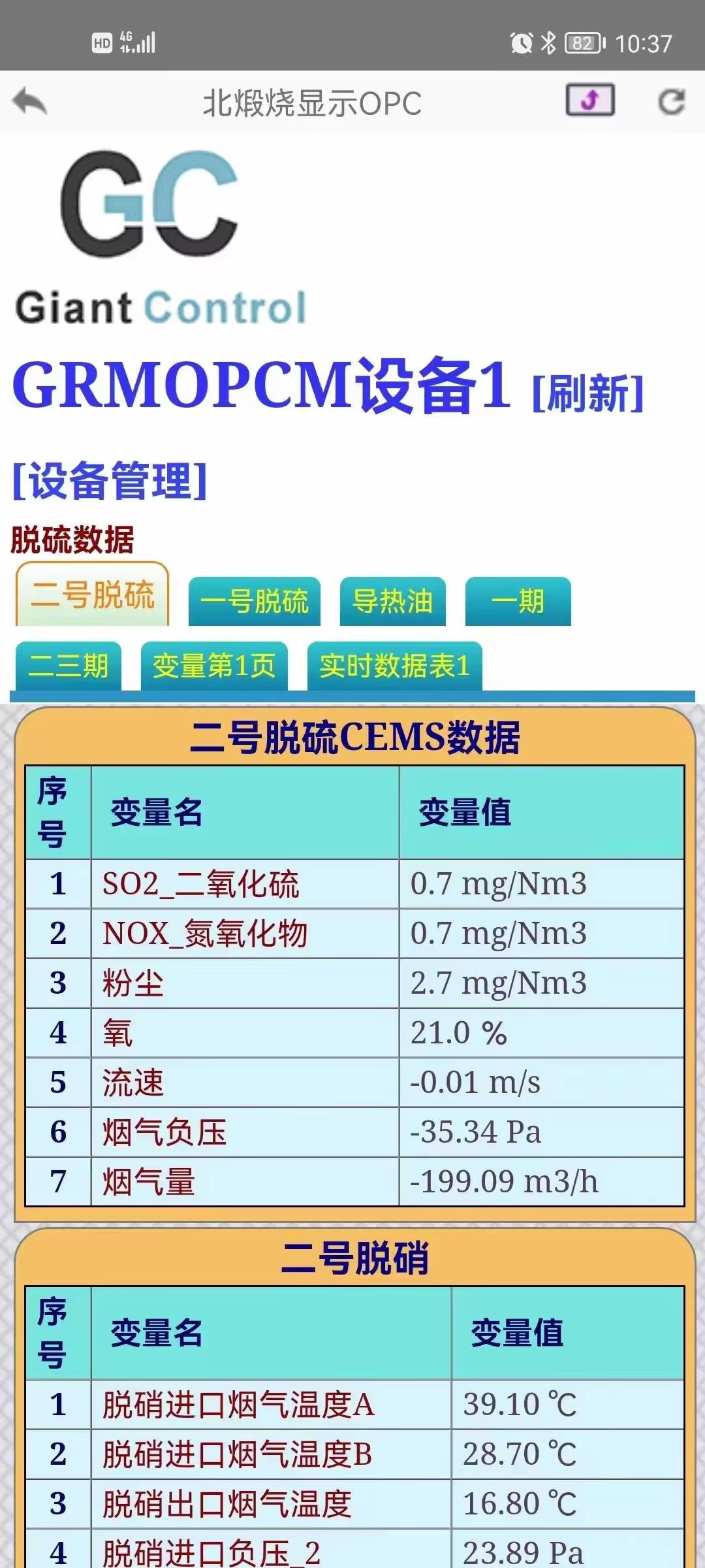 GRMOPC模塊讀取4臺組態王數據實現手機app監控和故障短信電話報警。