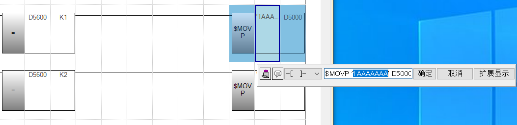 另外圖中 $MOVP “1AAAAAAA” D5000該輸出的意思是把字符串“1AAAAAAA”傳送到D5000嗎?那么選擇2BBBBBBB,3CCCCCCC這樣編寫也沒問題?