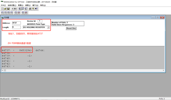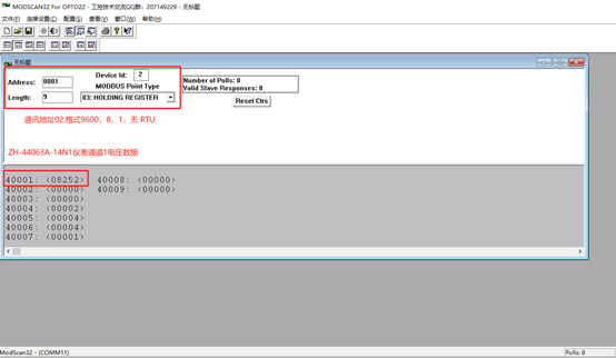 儀表ZH-44063A-14N1設置:通訊地址2,格式9600,1,無,8  RTU