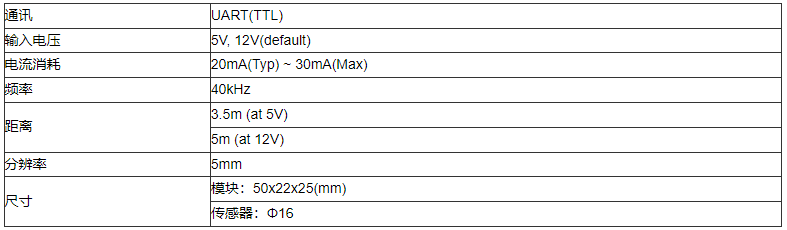 韓國Hagisonic 超聲波測距傳感器模塊 HG-C40U參數: