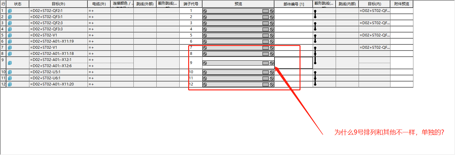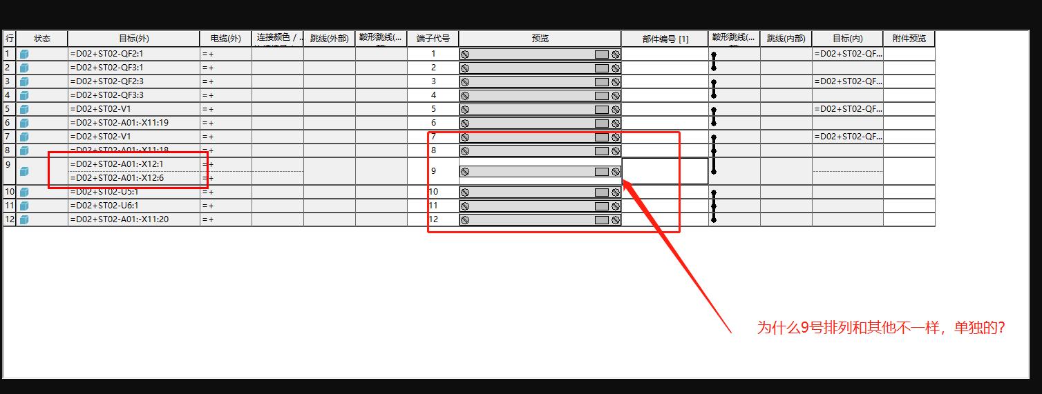 請看圖片,7/8/9三個確實是短接等電位,請問為什么9去掉就是正常排序的端子排,加上就是單獨隔離出的端子排?