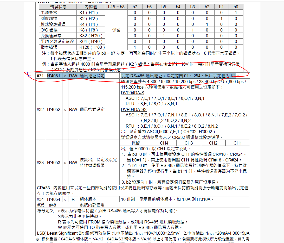 我遇到一個難題,手上有一個臺達的DVP-80Eh的PLC,PLC通過485總線連接5個模擬量模塊,模塊的型號是DVP-04da,現在PLC通過485連接的模擬量模塊壞了,更換新的模擬量模塊需要配通訊地址,請問各位誰有這方面的教程怎么配,謝謝