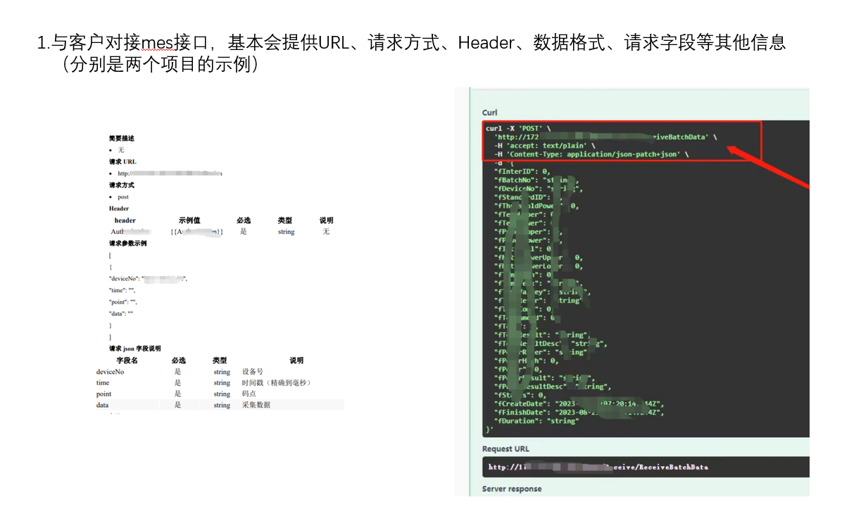 1.和客戶確認MES的接口,大部分是webapi,http。需要客戶提供URL地址(也就是MES服務(wù)器地址,一個網(wǎng)頁地址),Header(也就是標頭,有些會和URL地址寫一起),Content-Type(數(shù)據(jù)格式,大部分是 application/json),已經(jīng)請求的主題內(nèi)容,具體的每個客戶不一樣;