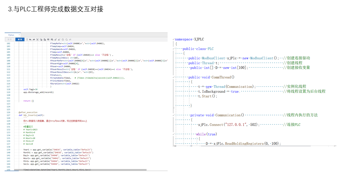 3.與PLC工程師對接數(shù)據(jù)地址,和數(shù)據(jù)格式,并完成與PLC交互測試。