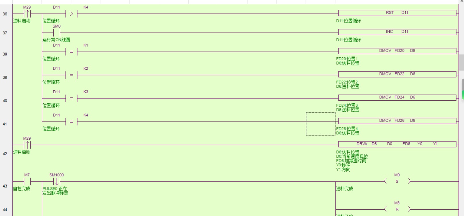 然后GoPos1~GoPosn是嚴格互斥的,任意時刻只有一個被置位,位置多了專門用一個D寫索引做數值比較也是可以的(還可以用間接尋址,更方便)