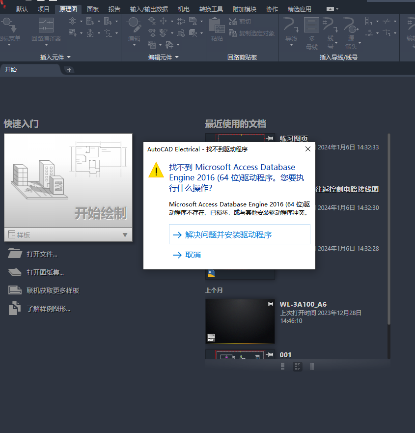 今日小弟裝的CAD 程序打開報錯;報警信息如下:“AutoCAD Electrical 找不到Microsoft Access Database Engine 2016(64位)驅動程序”。各位有什么好的解決辦法沒有。網上找了好幾個方法都不管用或者不會操作。
