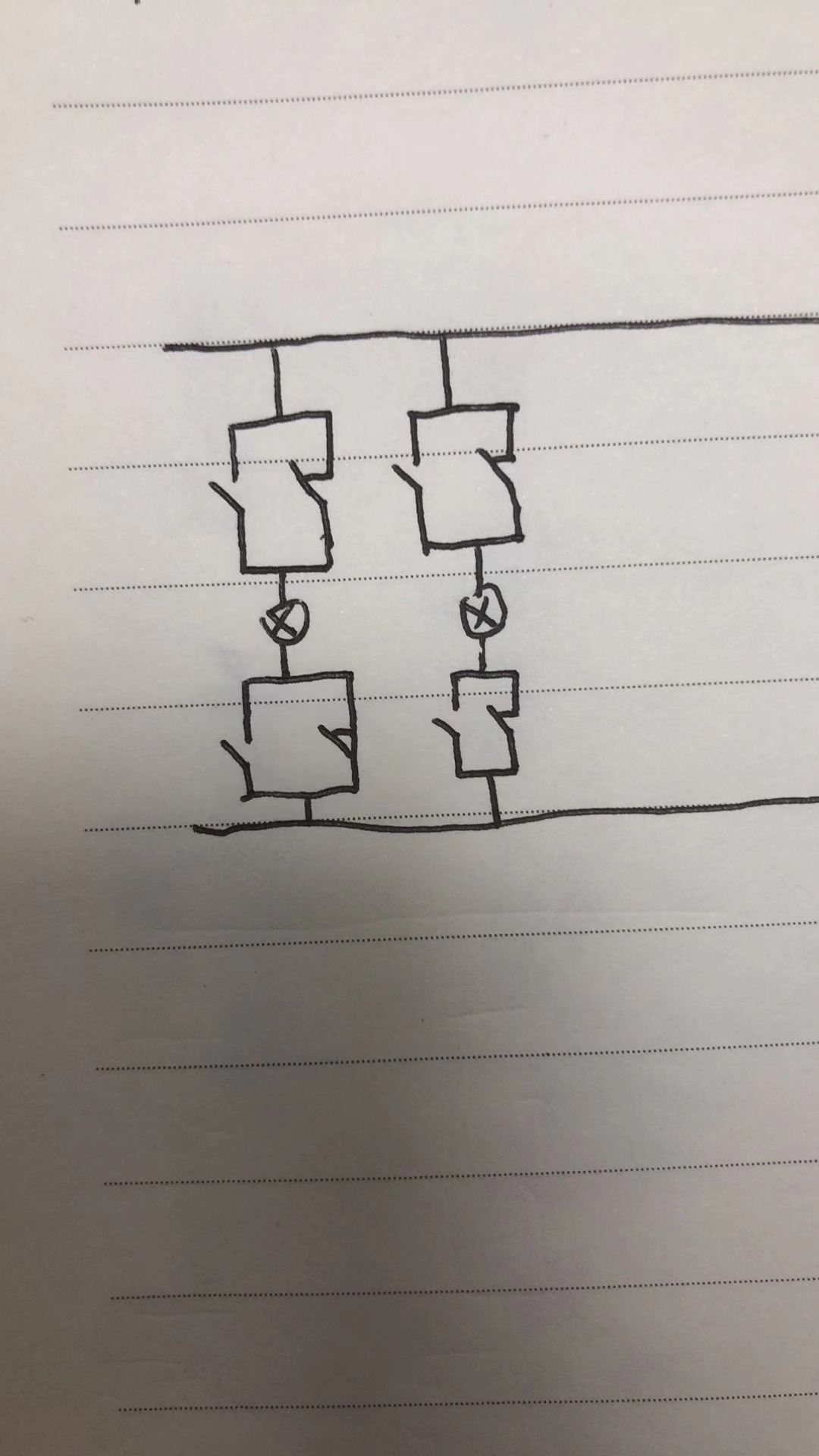 下圖是我打算用雙控開關做的圖,稍微畫了下,但是現在問題是一是走線太多,二是過道里的總燈條沒想到合適的辦法,各位大佬能提供下思路或者簡單的原理圖嗎