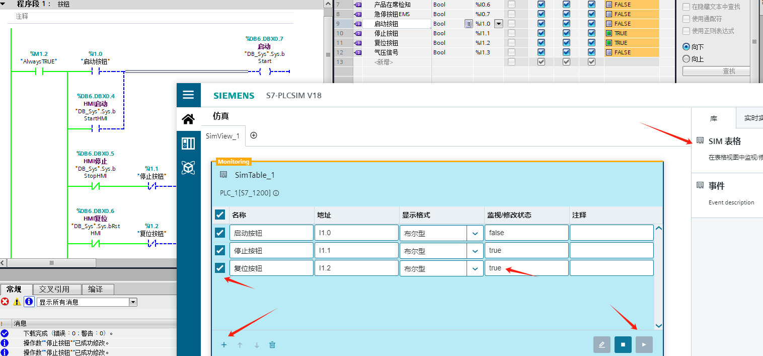 S7_1200的仿真強制I點如截圖,從SIM表格可以強制 I點,效果如圖所示;