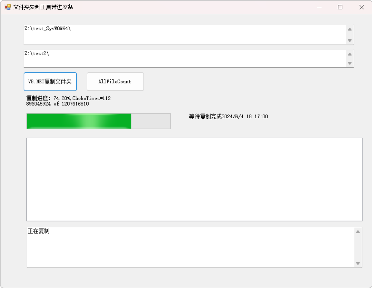 復(fù)制一下30秒左右,剛剛好。但是.NET寫(xiě)的代碼無(wú)法復(fù)制系統(tǒng)目錄,誰(shuí)有辦法?