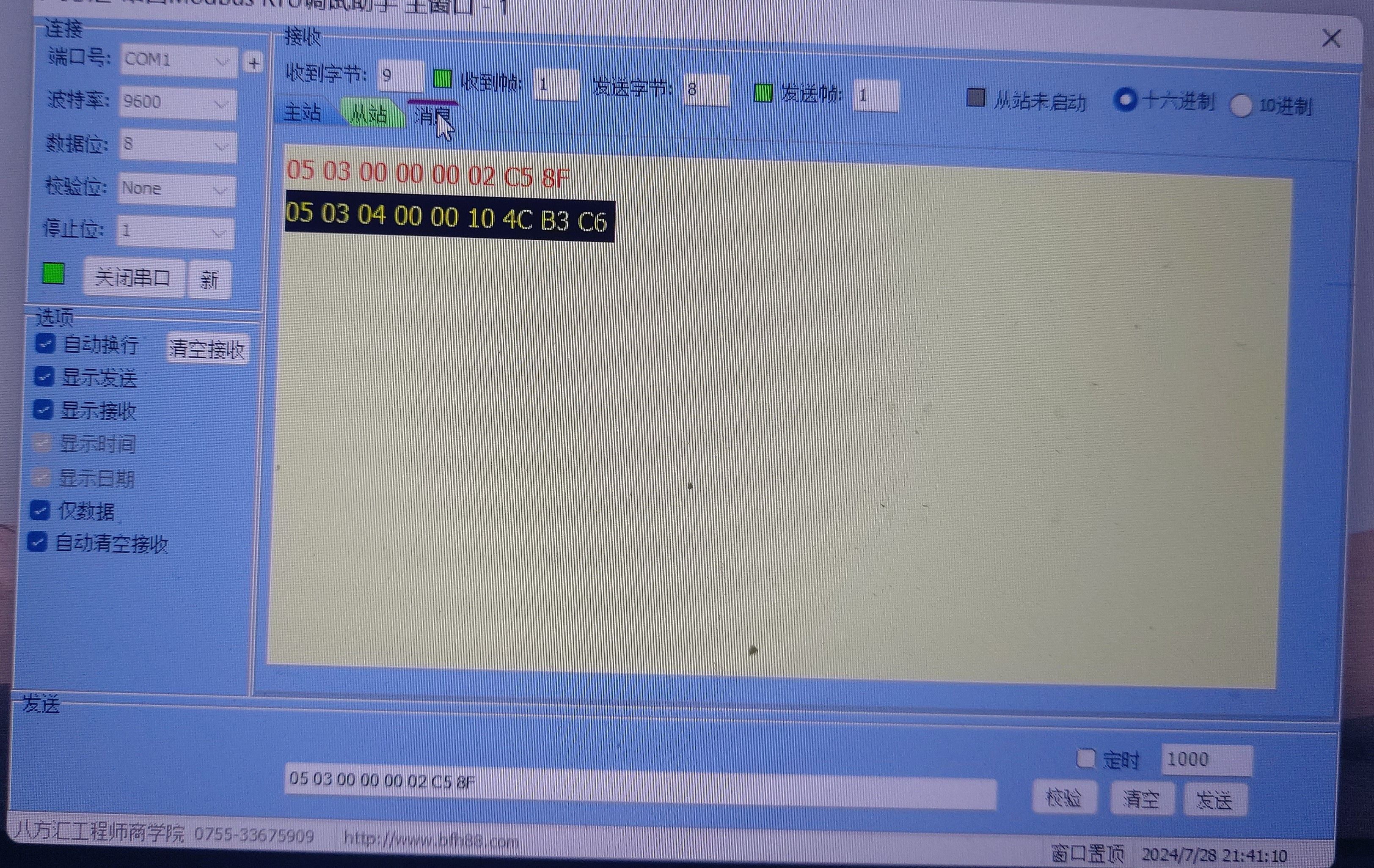 你按8位格式發(fā)送。建議使用modrw指令,COM3端口通訊,讀取數(shù)據(jù)方便。 |