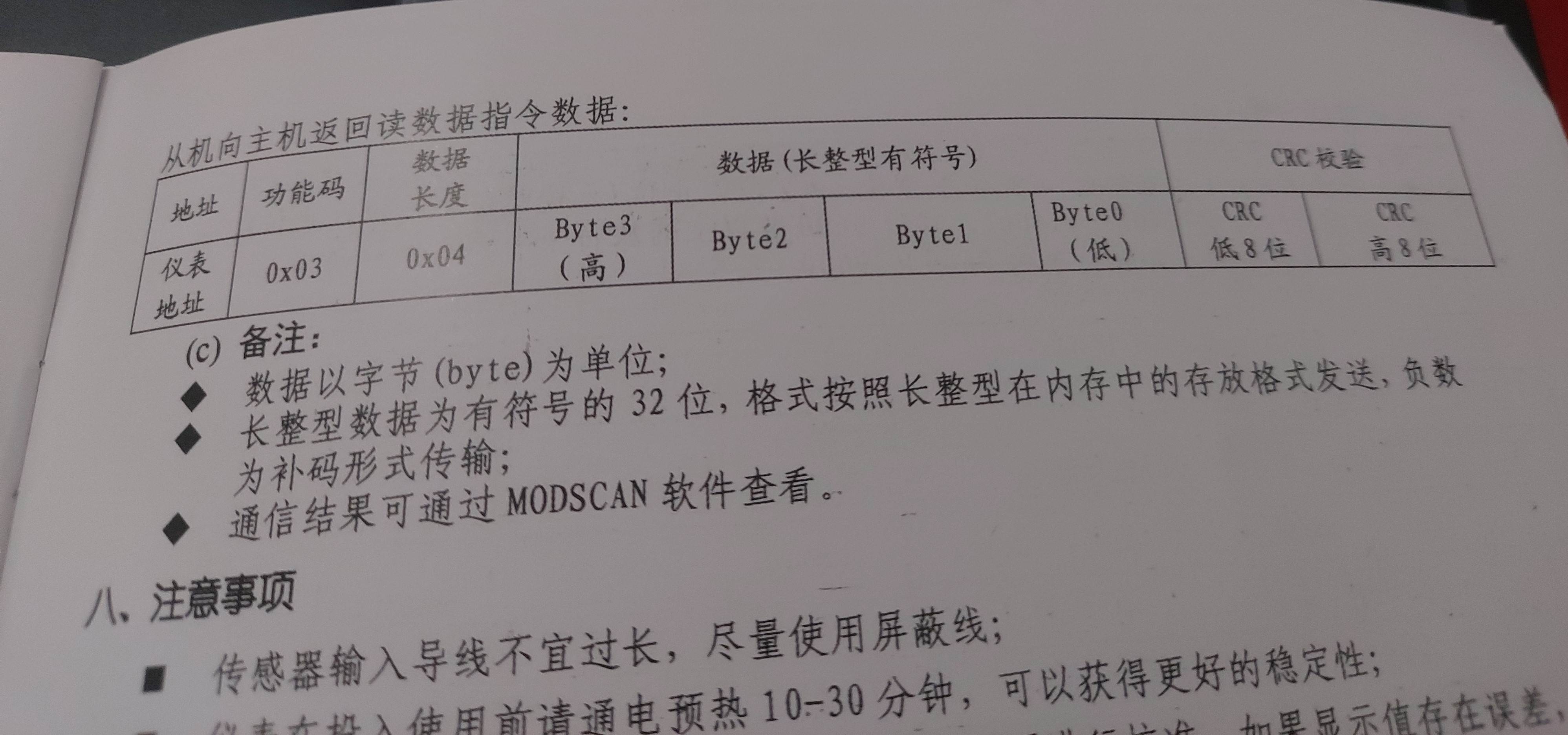 問題已經(jīng)解決了,是校驗碼搞錯了, 這次長了一個大記性,這個稱重儀表內(nèi)部改不了校驗,必須按它的格式來 |