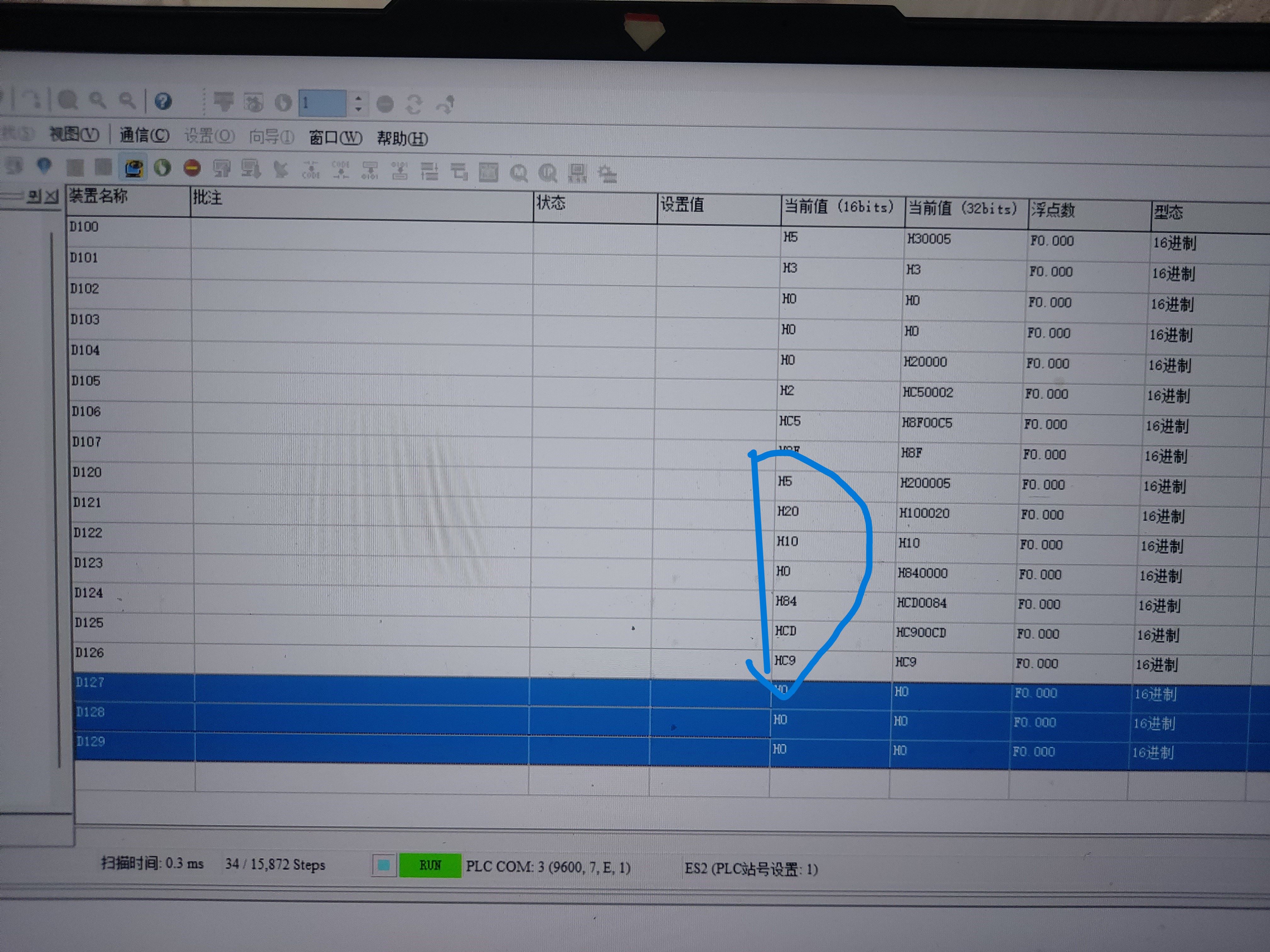 描述:用RS指令讀的,D100是發(fā)送D120是接收到
