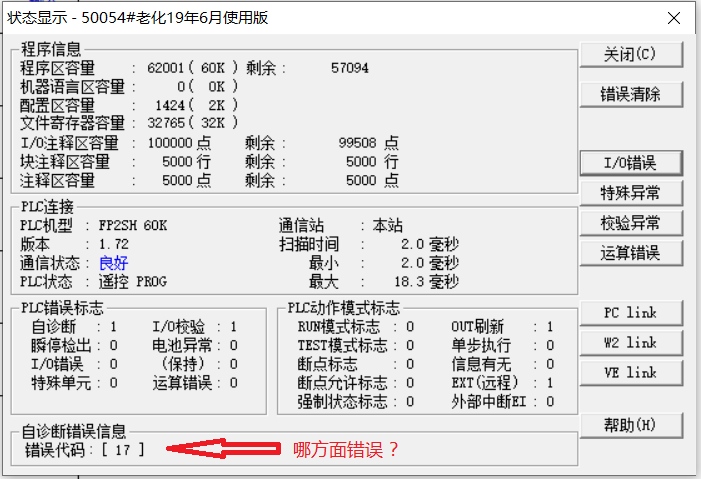 松下FPSH  PLC通電就自診斷錯誤 代碼:17    求指教這是哪里的問題!  謝謝!